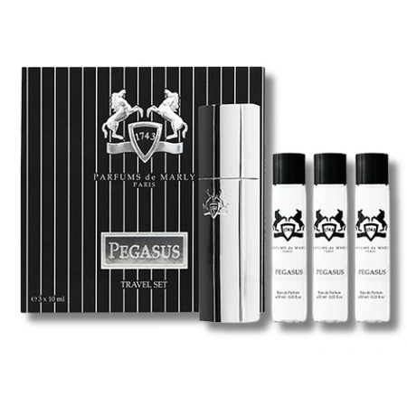 Travel Set zawiera trzy flakony po 10 ml oraz eleganckie etui, dzięki czemu Pegasus może towarzyszyć w podróży, codziennym rytmie lub wieczornych wyjściach – zawsze w tej samej, niezmiennej jakości.