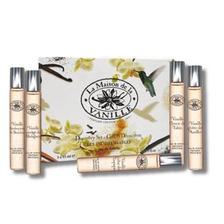 - Zestaw pięciu wód toaletowych o zapachach wanilii z różnych zakątków świata. Format 15 ml idealny do podróży i testowania.